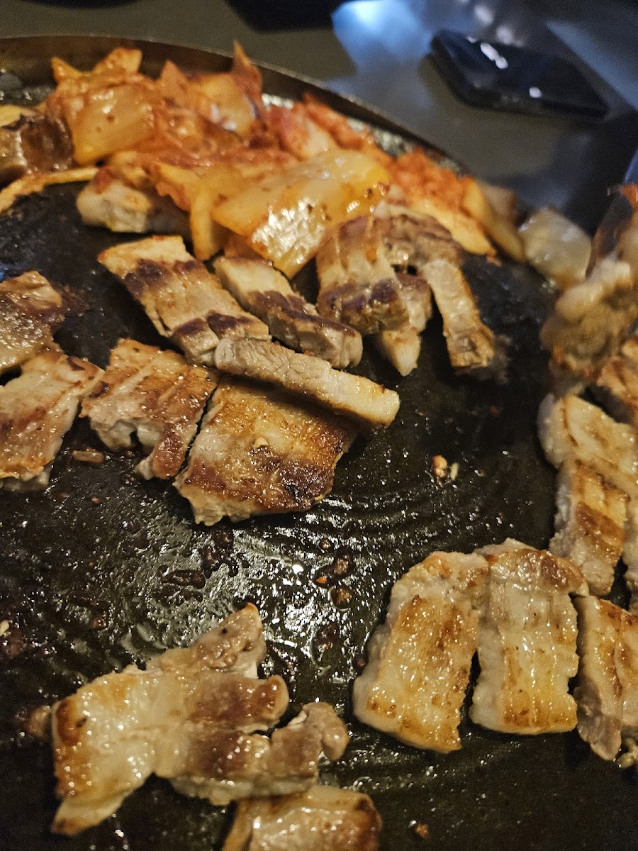 The restaurant also offers a selection of banchan, which are small side dishes traditionally served with Korean meals. These range from kimchi (fermented vegetables) to pickled radishes and stir-fried vegetables. These sides not only complement the grilled meats but also add a depth of flavor to the overall meal. If you’ve never had banchan before, it’s definitely something to try, as they offer a variety of tastes that contrast with the savory grilled items.